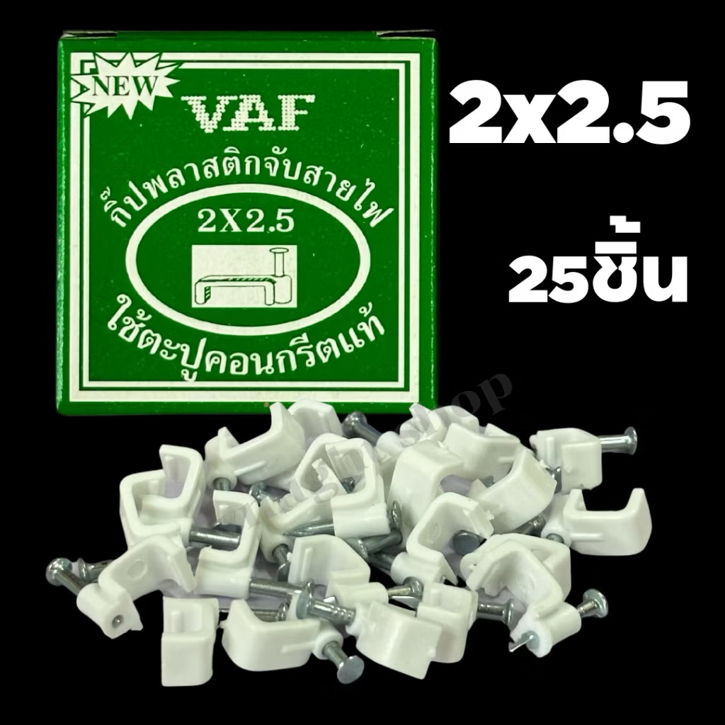 - ยึดสายไฟ VAF ขนาด 2×2.5 mm² กับพื้นผิวต่าง ๆ เช่น: